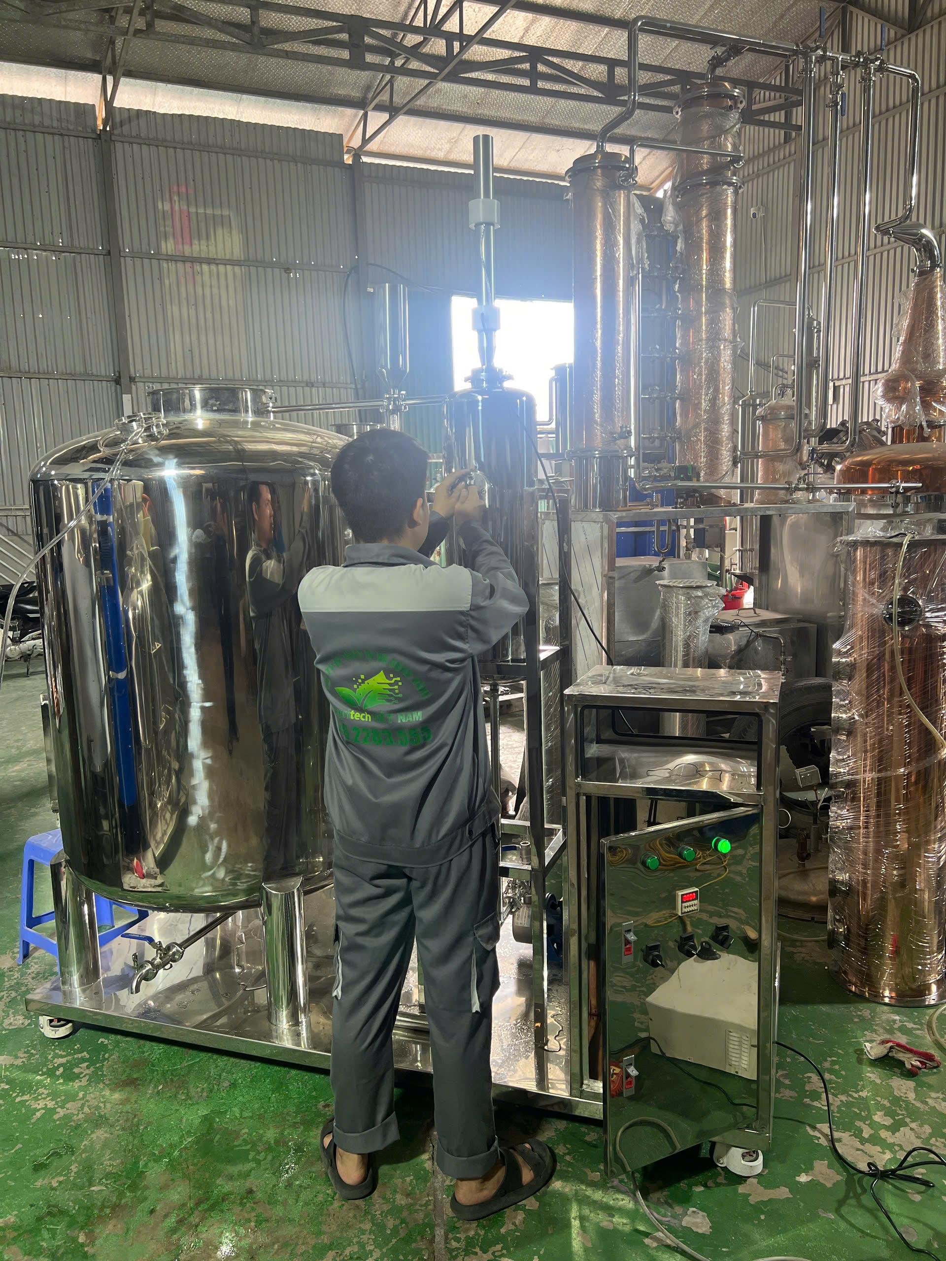 - Dễ dàng sử dụng tại nhà: Thiết kế nhỏ gọn (kích thước chỉ bằng tủ lạnh mini), làm từ inox 304 chống gỉ, dễ vệ sinh. Phù hợp với hộ gia đình có nhu cầu 10-50 lít/tháng, không cần kỹ thuật cao – chỉ cần đổ rượu vào bình, bật nút và chờ.